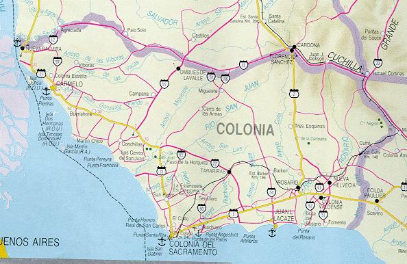 Departamento del litoral platense ubicado en la desembocadura de los ríos Paraná y Uruguay. Limita al norte con el departamento de Soriano y al este con San José (tiene un ligero contacto con Flores por el noreste). Tiene costas sobre el río Uruguay y a partir de Punta Gorda sobre el río de la Plata hasta la boca del arroyo Cufré.
